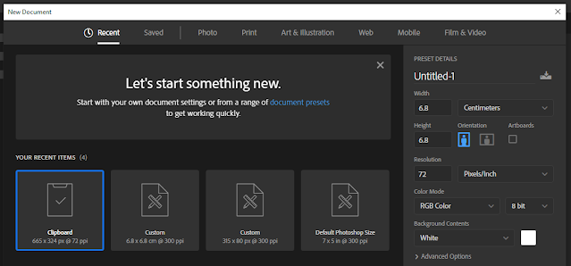 3. Lalu Pilih Ukuran Canvas Seperti gambar berikut :